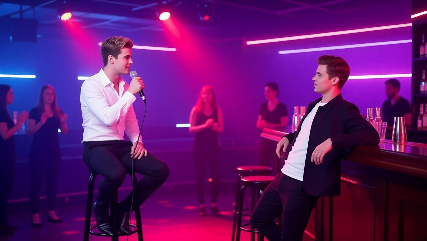 EVERYONE KNOWS TONIGHT Set during karaoke night at SKIN, this slow-burn ballad captures the moment Rocky stops hiding. Sung straight to Caleb in a room full of witnesses, it’s a confession wrapped in melody—where desire rises, silence speaks, and nothing feels secret anymore.